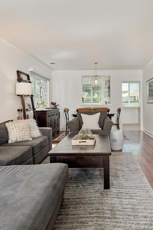 Make yourself at home in this warm and inviting updated 3/3 in one of the best neighborhoods in Mar Vista. On a corner lot at a cul de sac known for its neighborly block parties. Charming & bright, this home has a remodeled kitchen with Caesar stone counters, glass tile backsplash, breakfast bar & separate pantry with laundry. Spacious upstairs ensuite primary bedroom with treetop and coastline views from windows on 3 sides, plus office nook. The other 2 bedrooms are downstairs and generously sized, with 1 ensuite. Peaceful and lush backyard with ample room for entertaining. Engineered hardwood floors, AC, and Nest system that includes thermostat, doorbell, lock and smoke/carbon monoxide alarms. Solar panels, alarm & much more round out this special home.